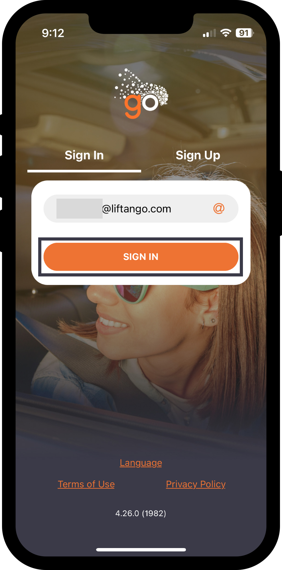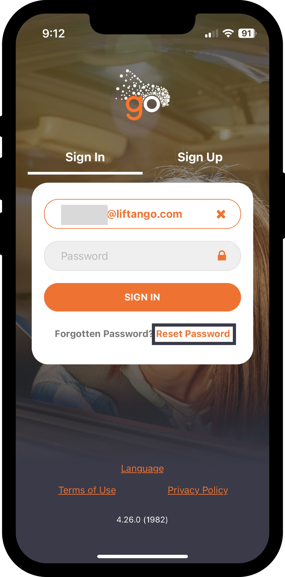 9. Navigate back to the Liftango app, use your email and new password to sign in.