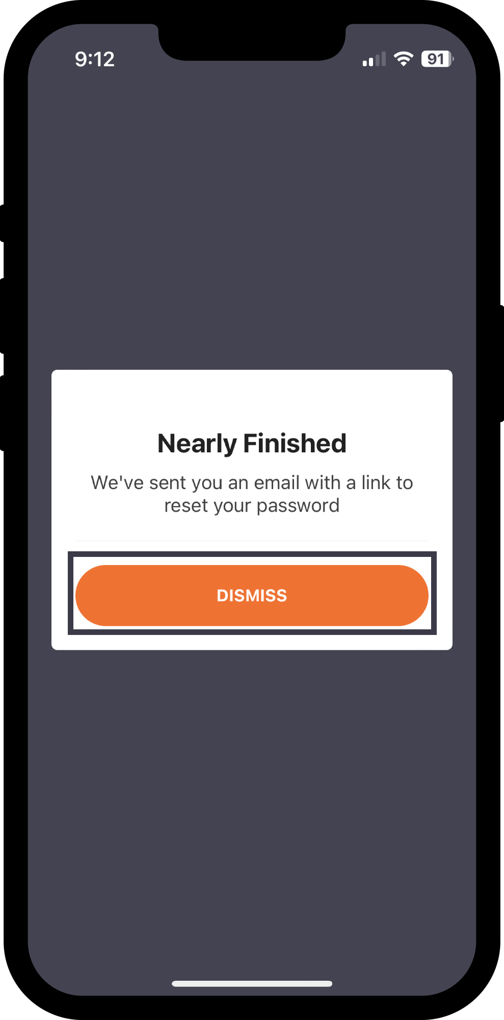 - Nearly Finished prompt will display. Tap 'Dismiss' to confirm.
