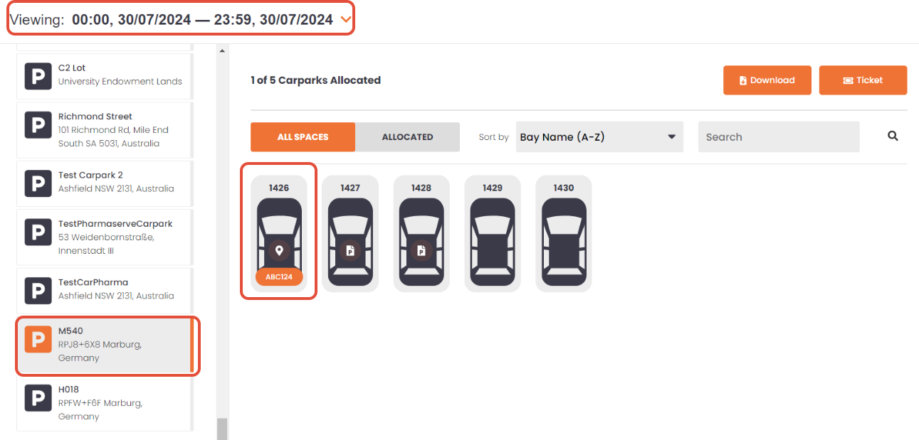 | 2. Select the correct time and carpark to view all the allocations. In this example, we can see the allocation for the ride example shown above. | ![]() |