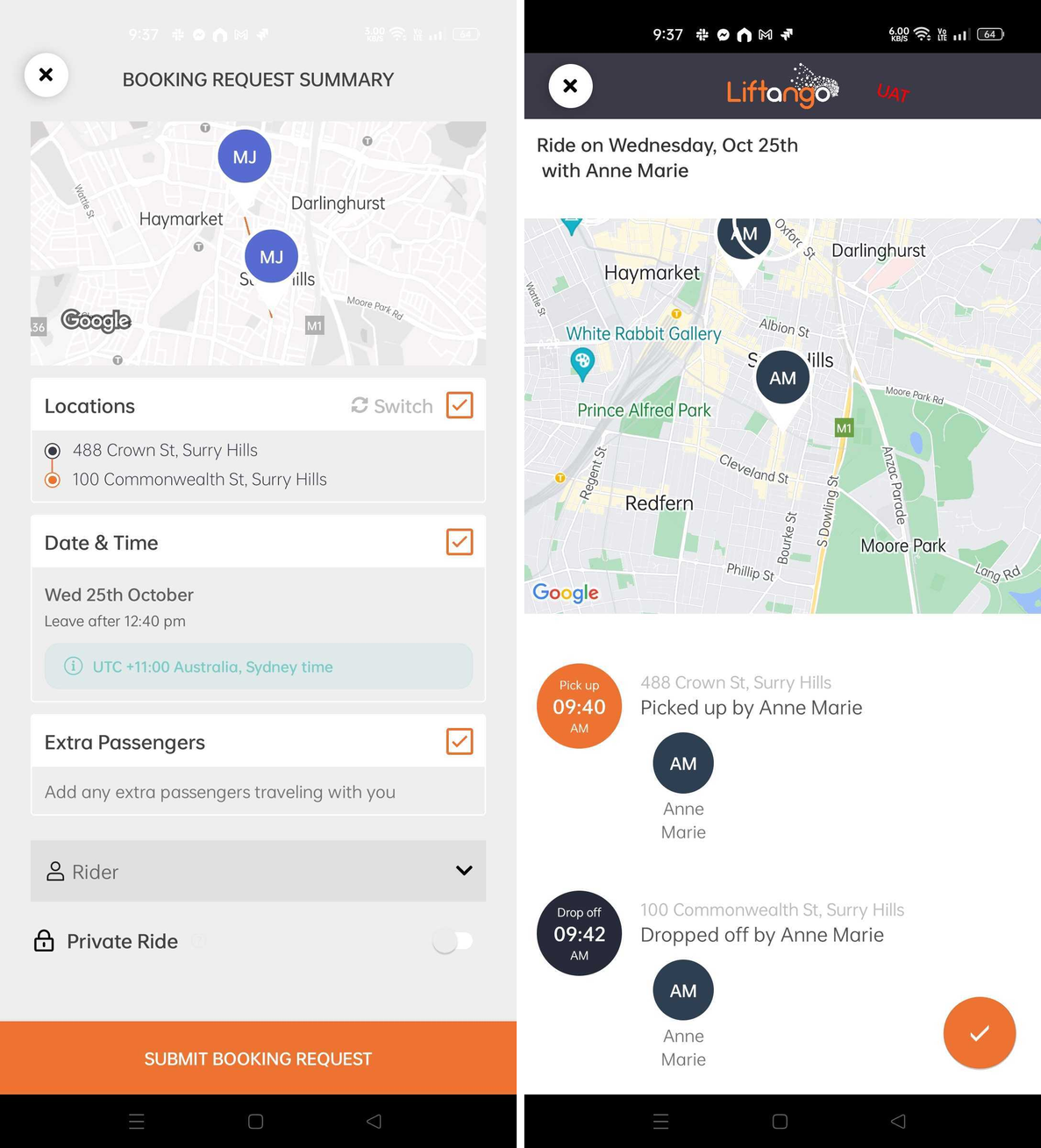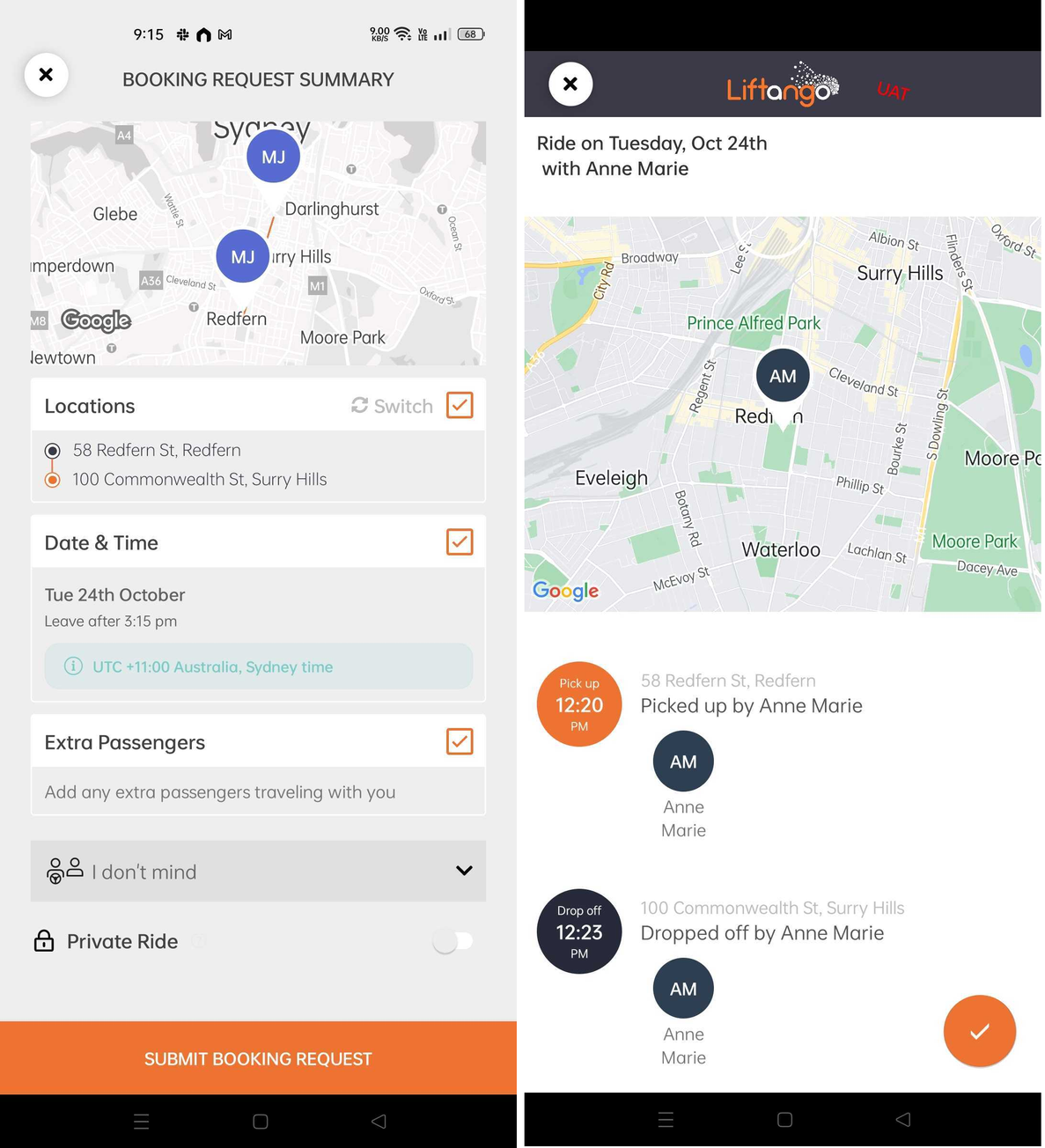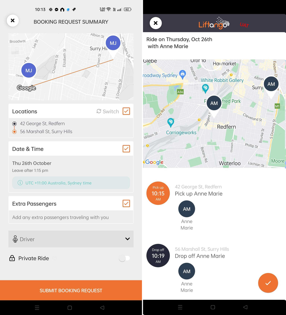 Screenshots below shows a Public ride matching, but roles assignment shown below also applies for Private Rides requests.
