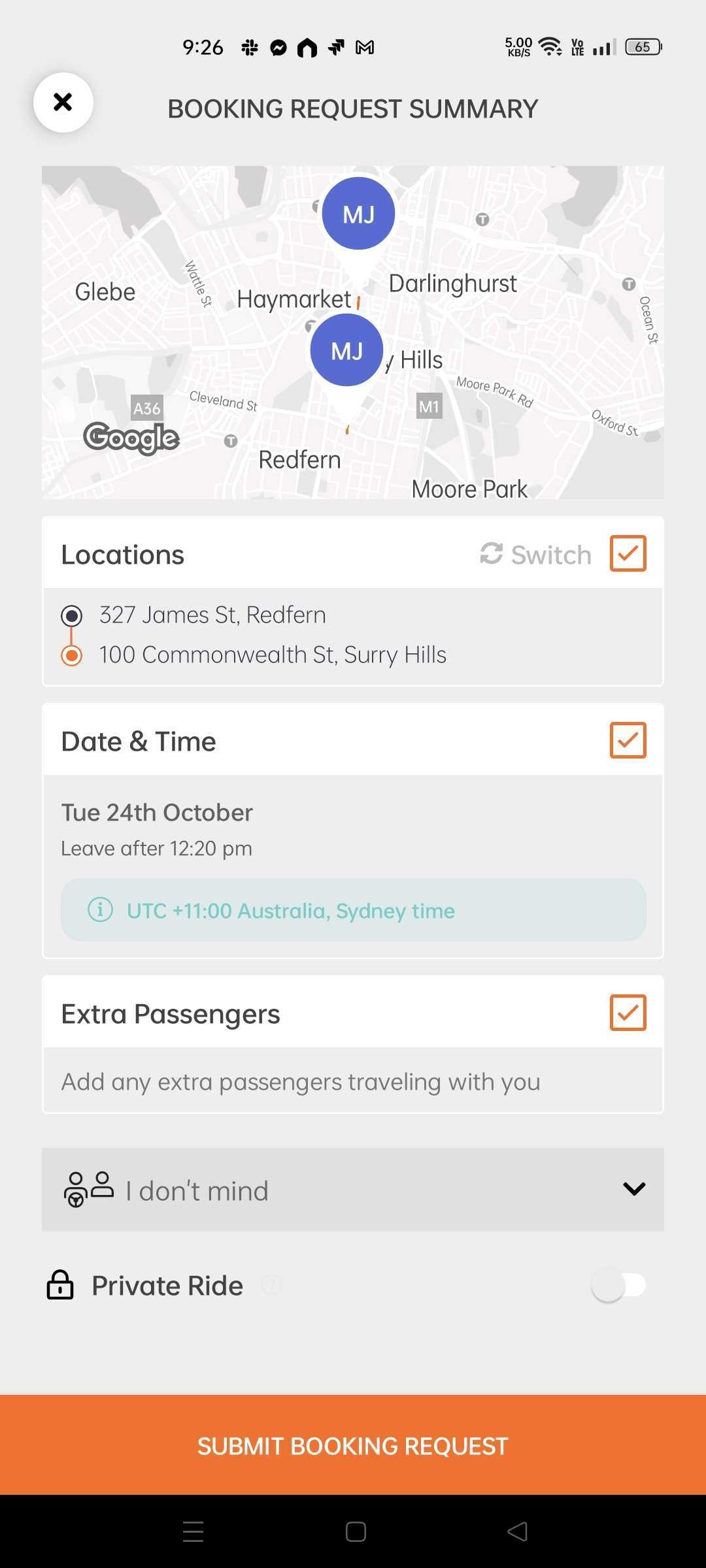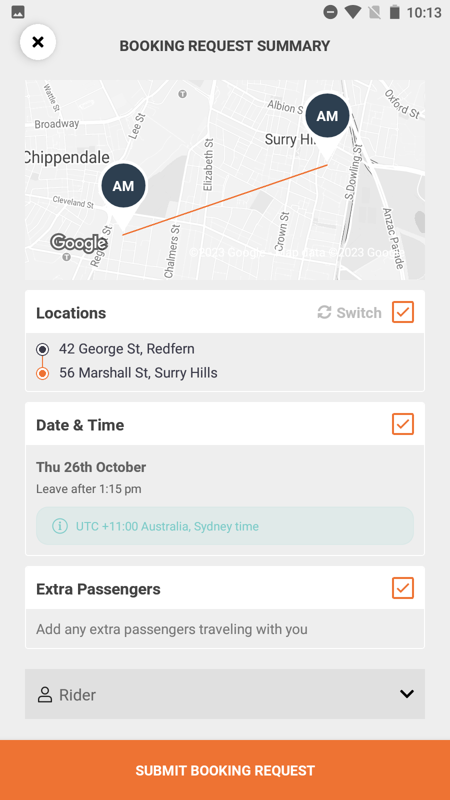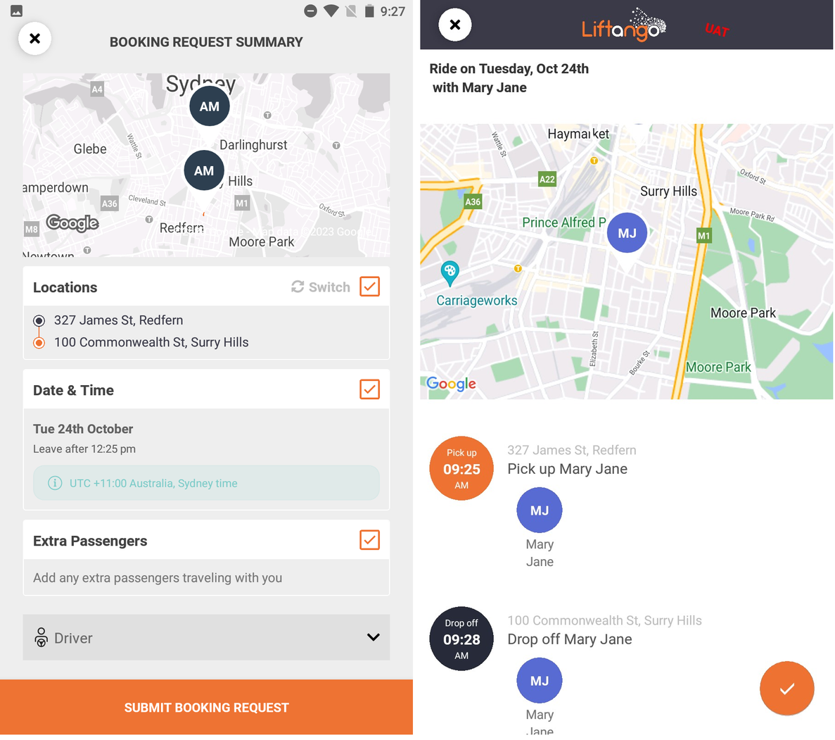Screenshots below shows a Public ride matching, but roles assignment shown below also applies for Private Rides requests.