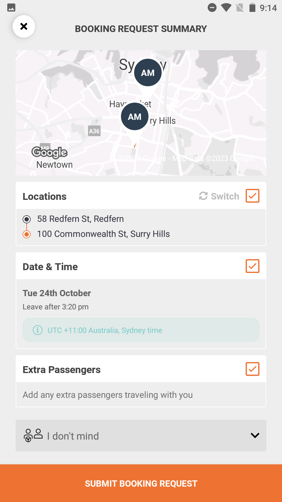 - If both carpoolers choose 'I don't mind' as their role, and Carpooler 1 submits the public ride request first, Carpooler 1 is automatically assigned as the driver.