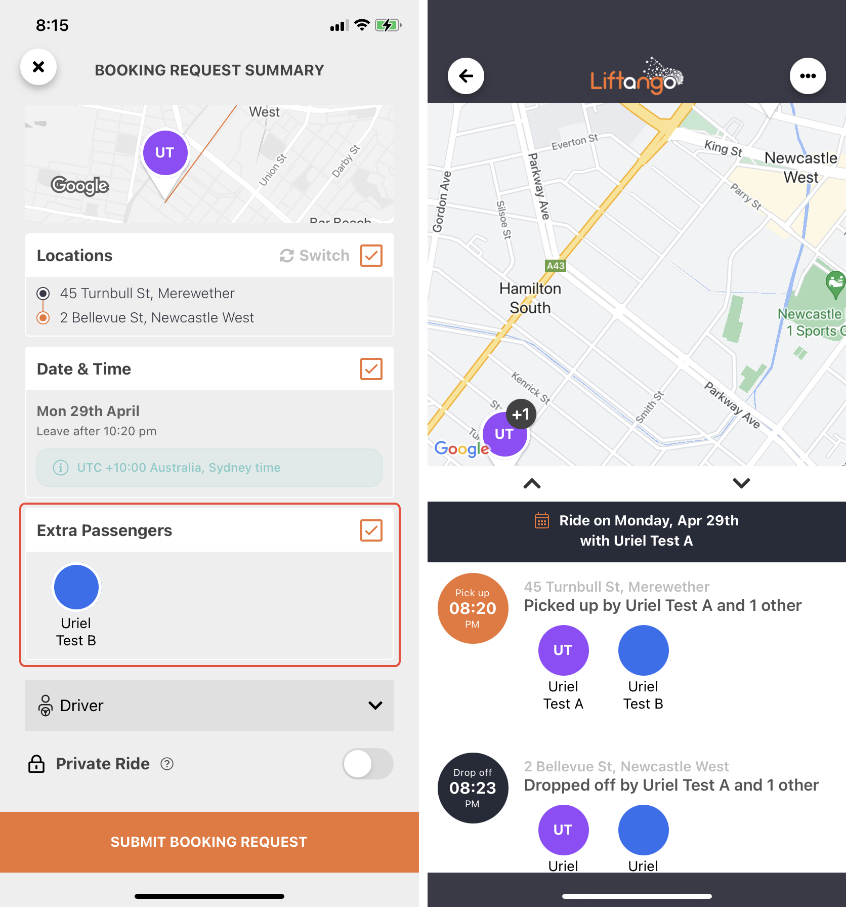 Users within a network cluster can also add extra passengers, similar to how they would in a regular carpool ride. For more information on how to add extra passengers, please visit this article tutorial: Extra Passengers Guidelines.