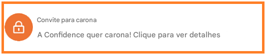 Quando um usuário de carona usa o recurso de Viagem Privada para pedir que alguém se junte a ele como motorista ou passageiro, uma notificação é enviada.