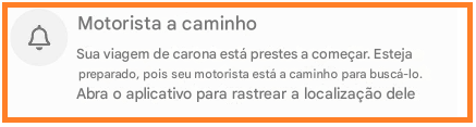 Assim que o motorista iniciar a viagem, uma notificação será enviada ao passageiro informando que o motorista está a caminho.