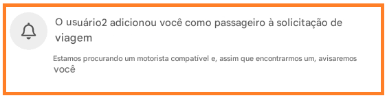 O carona também será notificado quando alguém que ele conhece o adicionar como Passageiro Extra Nomeado à viagem solicitada.