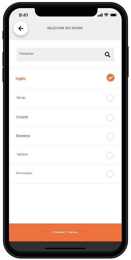 - O usuário será então solicitado a selecionar seu idioma preferido.