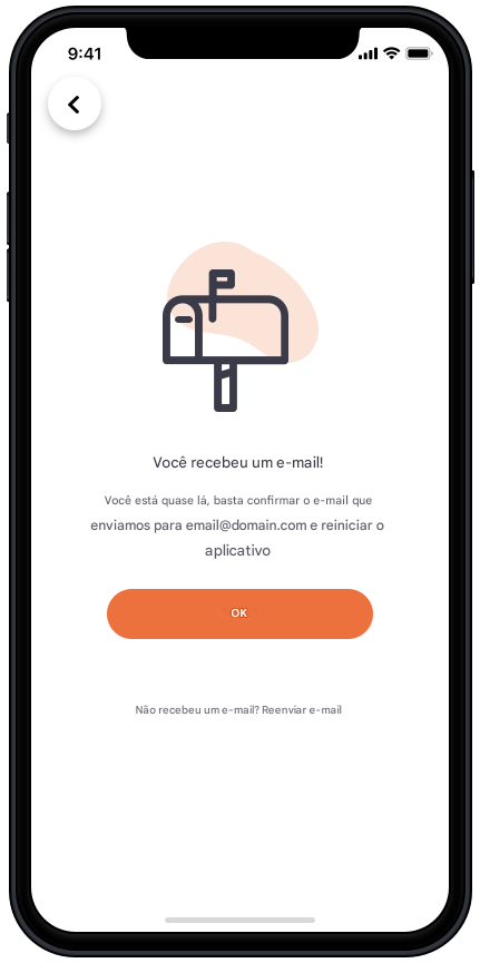- Após o cadastro, o usuário verá a tela de verificação informando que o e-mail foi enviado para seu endereço de e-mail.