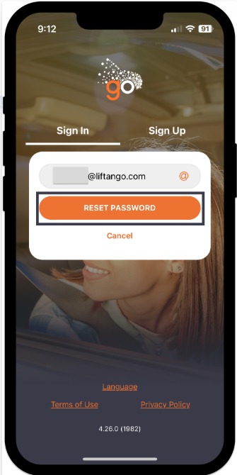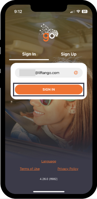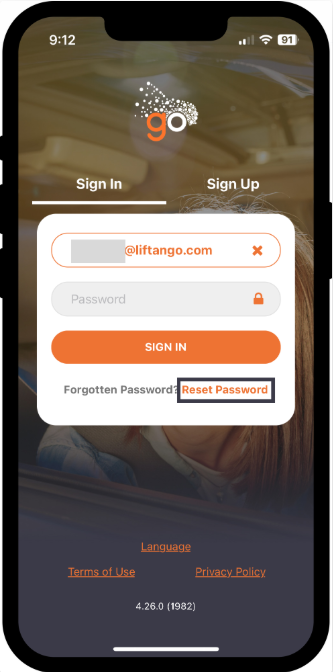 9. Volte para o aplicativo Liftango e use seu e-mail e nova senha para entrar.