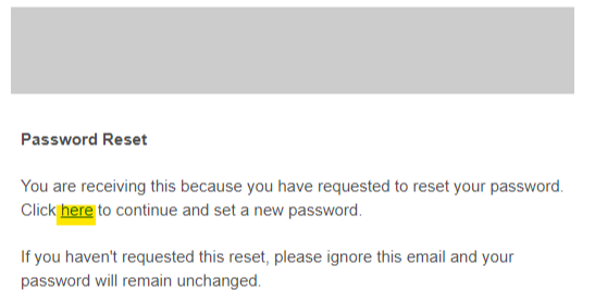 6. Abra o e-mail e toque no link azul no primeiro parágrafo, “aqui”. Isso o levará para a página de “redefinir senha”.
