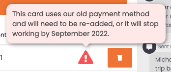 Na data final da transição, os cartões que ainda não foram processados para o novo método serão removidos do perfil do usuário. Na próxima vez que uma reserva for solicitada com o pagamento por cartão, será necessário cadastrá-lo novamente.