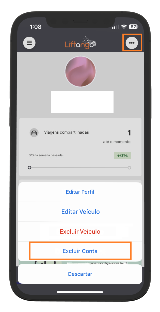 Esteja ciente de que a exclusão da conta será realizada, pois ela será removida após a confirmação. Seu histórico de viagens , preferências e informações de perfil não serão recuperados após a exclusão.