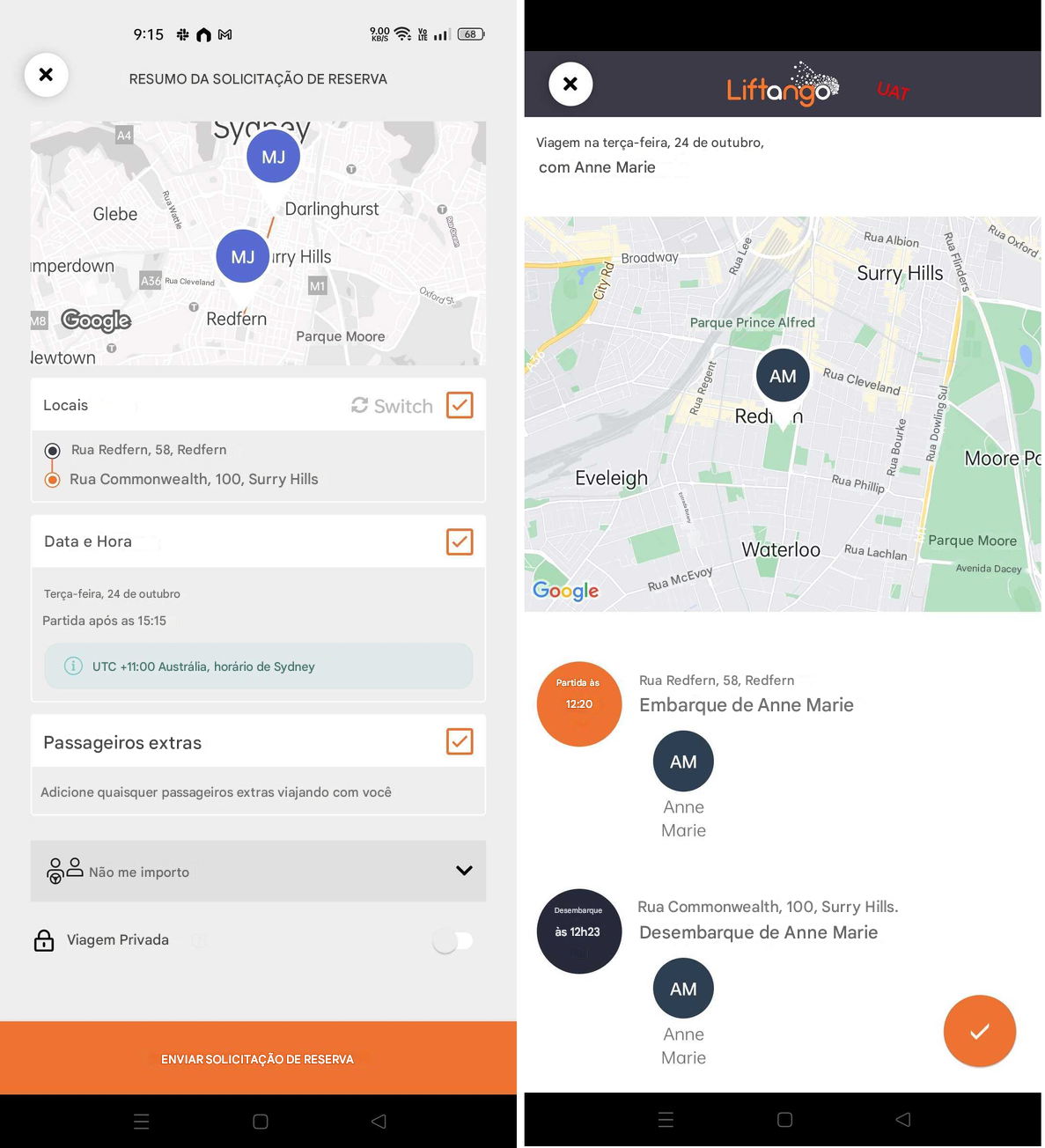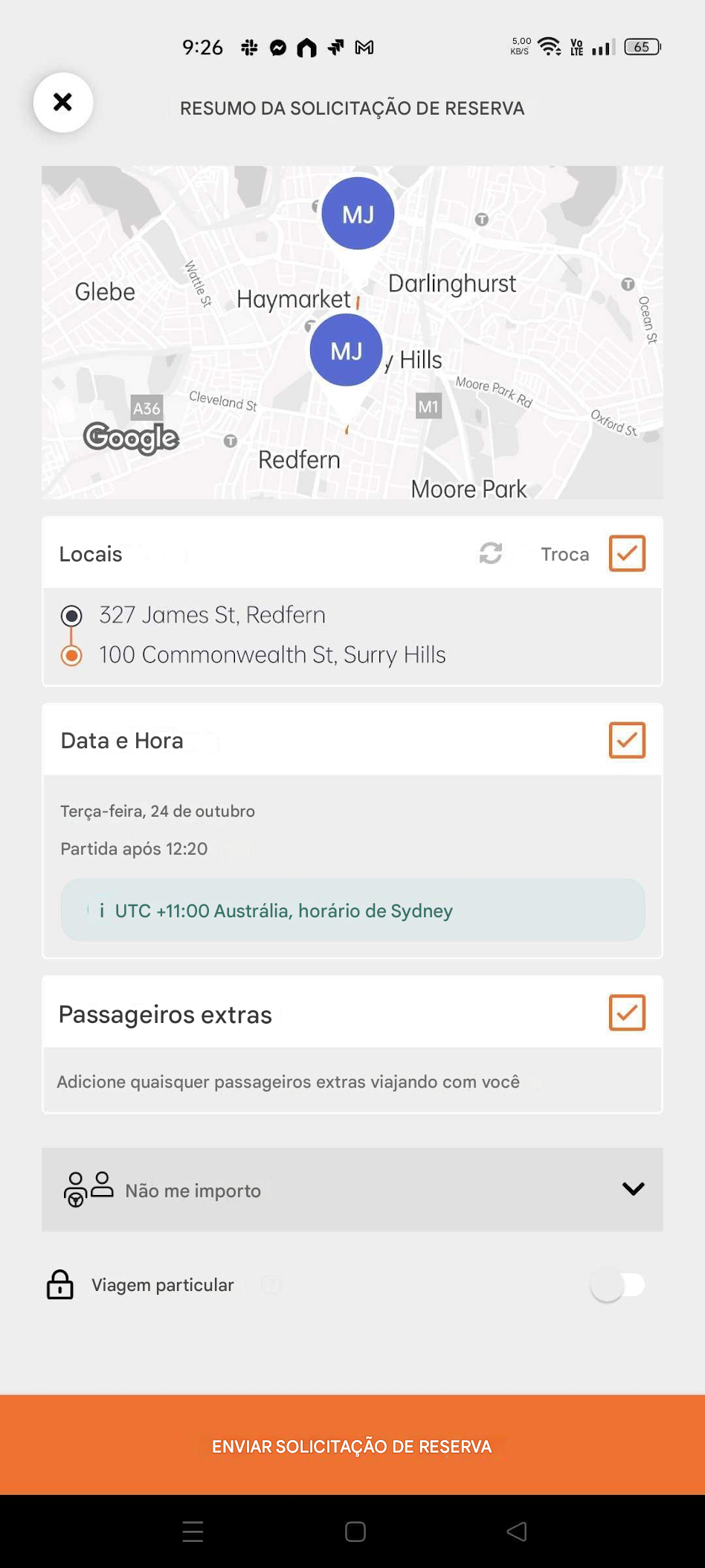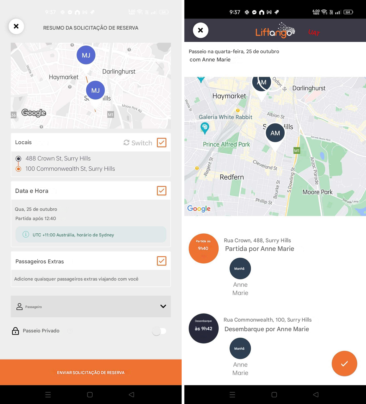 - Recurso de caronas privadas - Este recurso permite que os usuários enviem uma solicitação de carona para o parceiro de carona desejado.