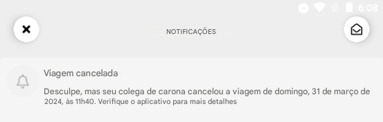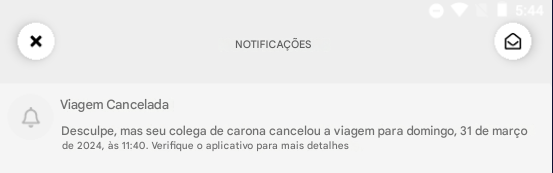 - A viagem correspondeu, mas foi cancelada posteriormente pelo carona. (notificação mostrada abaixo) .
