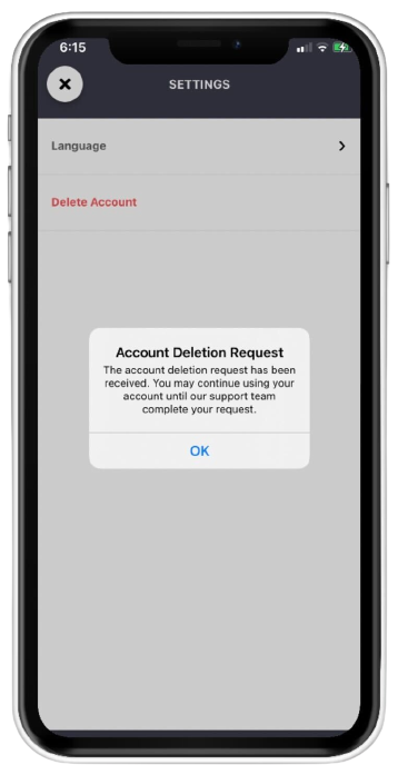User Account Deletion is a feature that allows the users to initiate deletion of their account from within the app.